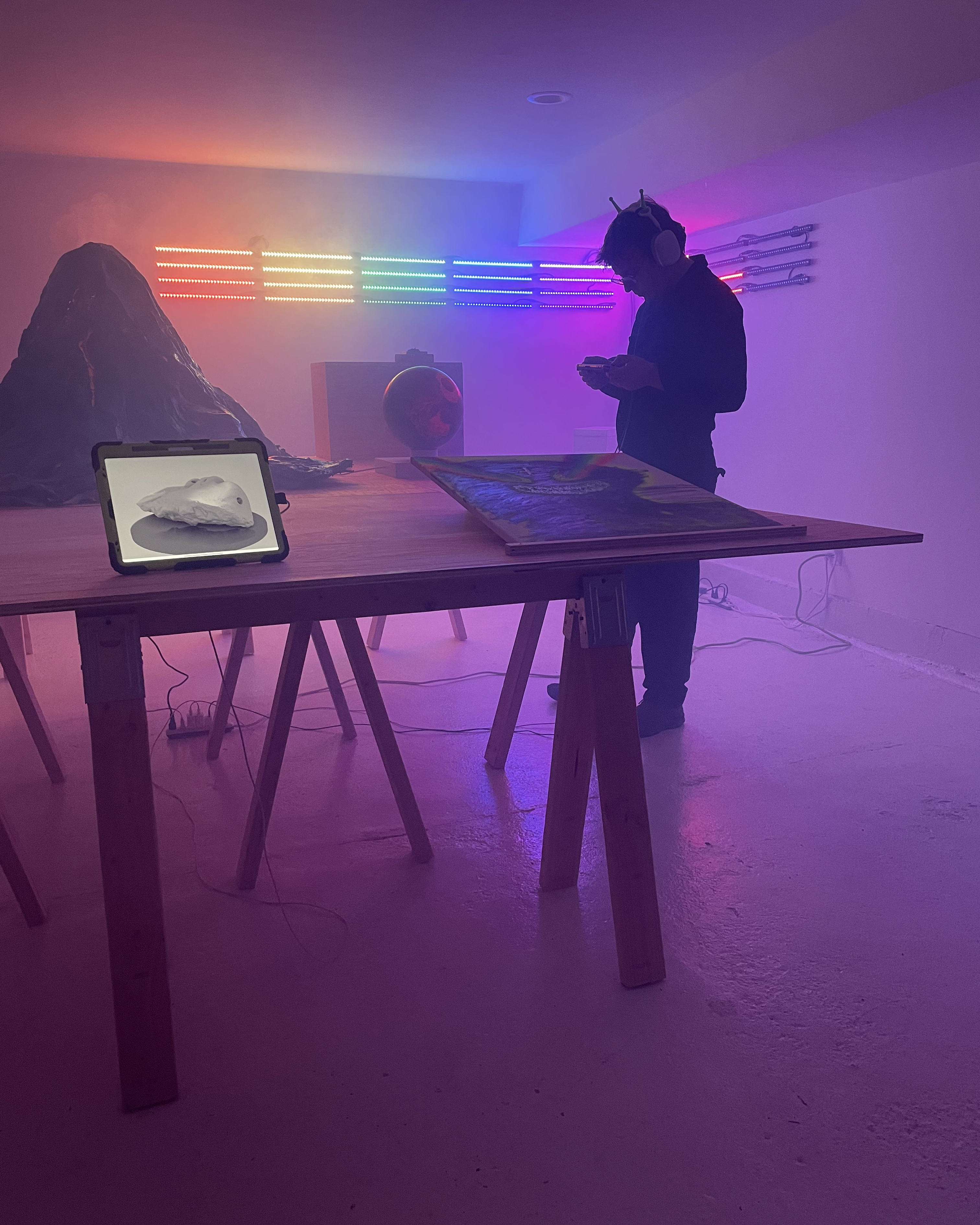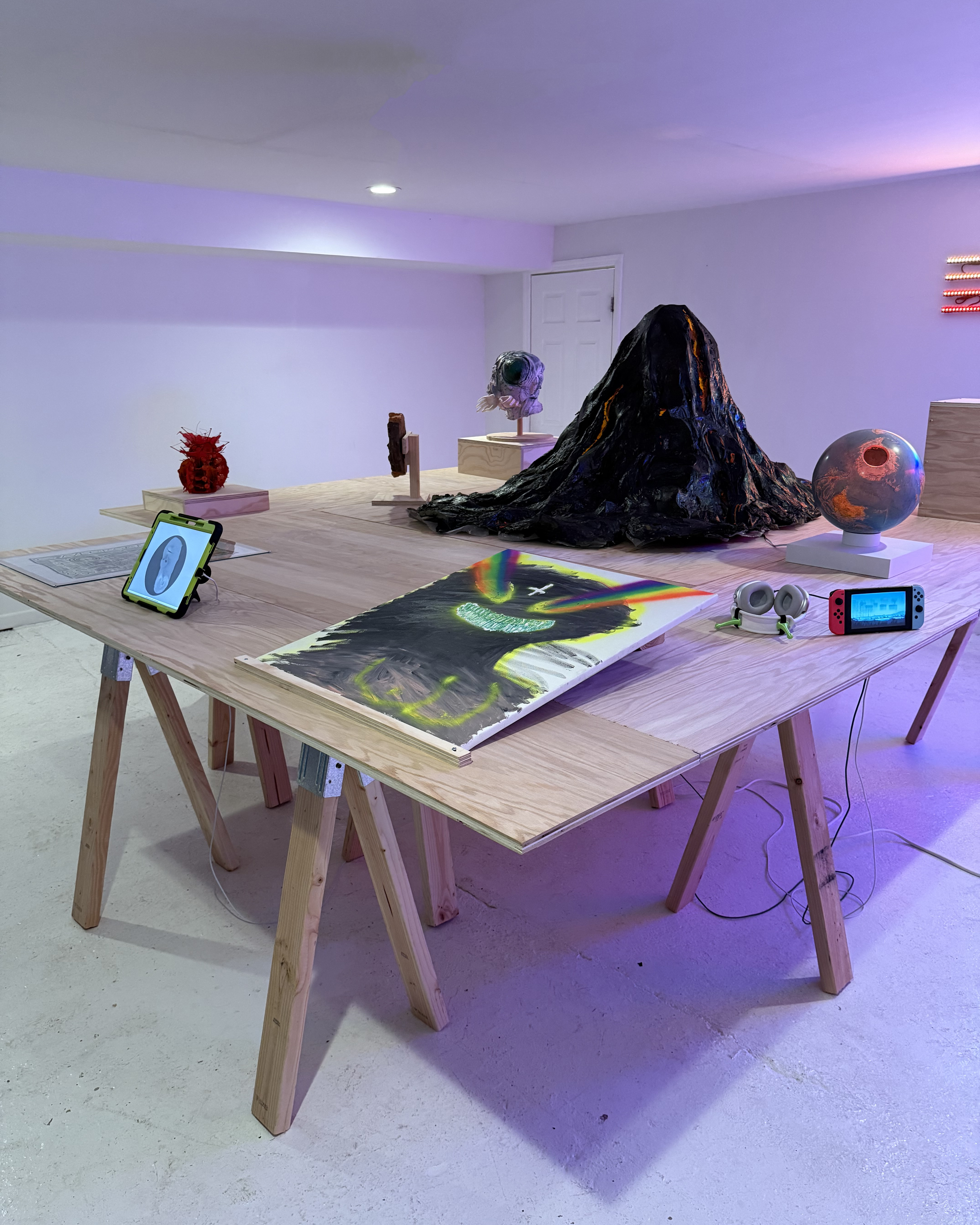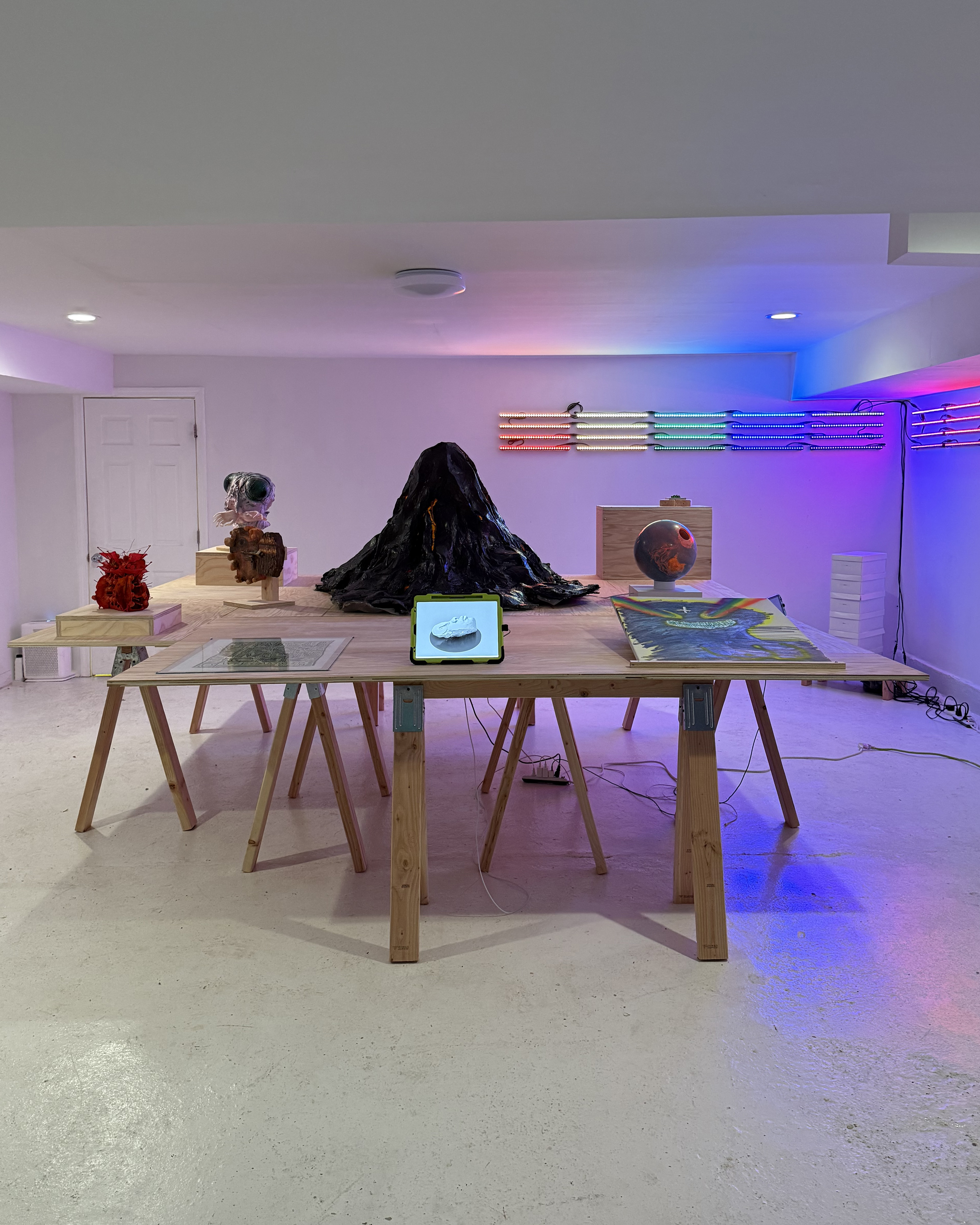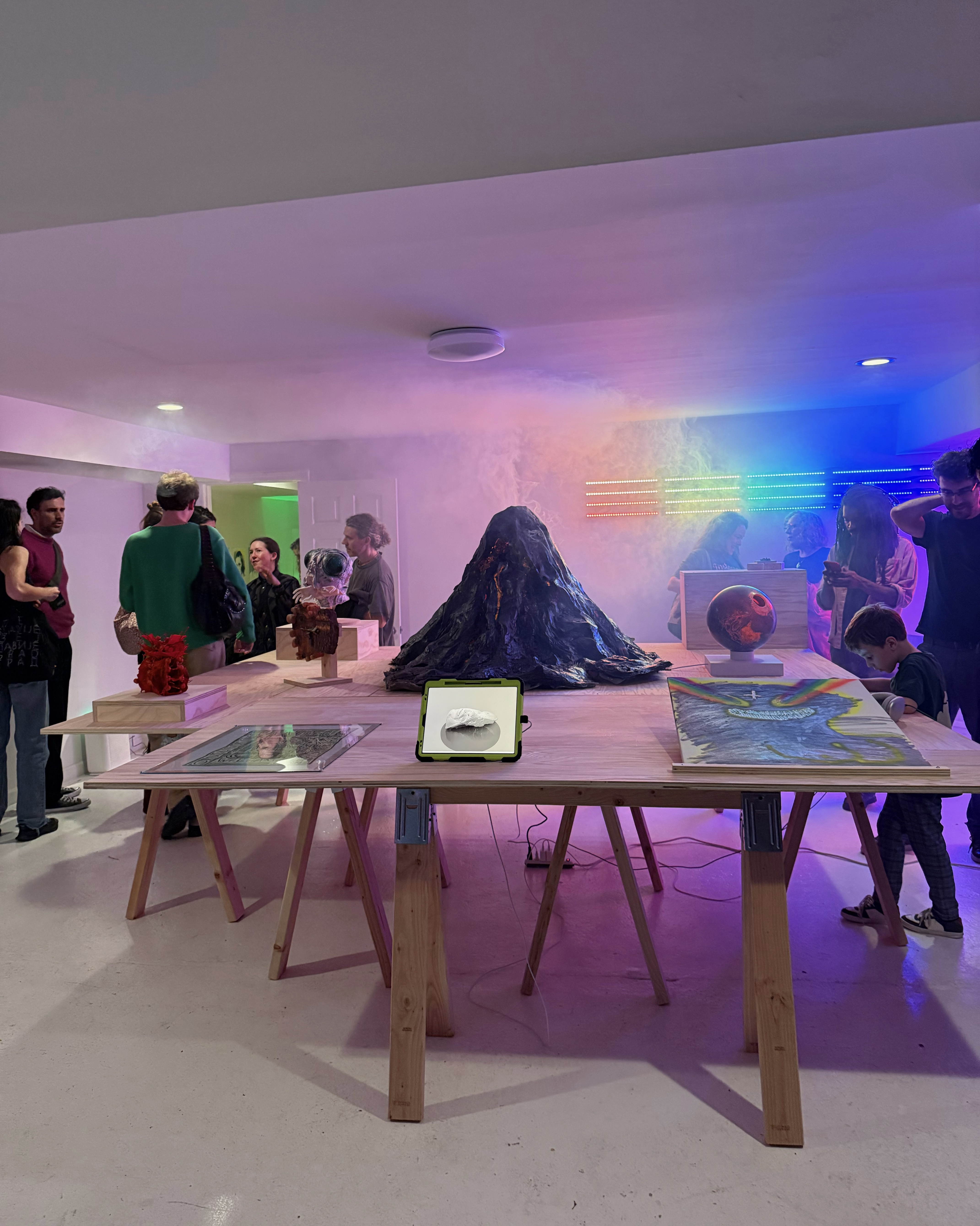 Participants were reached through a combination of direct invitations, requests to suggest another artist in one’s stead, and selections from a first experiment with an open call (posted on April Fool’s day, not coincidentally). All were, however, provided the same emoji-infested prompt, which proved only slightly less confusing when supplemented by a few sentences of what S M I L E R S was seeking in its so-called “transmissions”. What came back through this self-imposed static was brilliantly motley—some of the works (from those tapped by others) arrived without making prior contact with their makers. Tremendous gratitude is therefore due to these Believers who have brought to the table a strange and fantastic array of creations in various media. Personal interpretations of the science fiction genre come together in the spirit of a traditional science fair: a showcase of individual talent while ultimately—communal. Stated at the welcome risk of undermining its curatorial principles, this group show is the visual product of weird communication and wild feats of mutual trust.